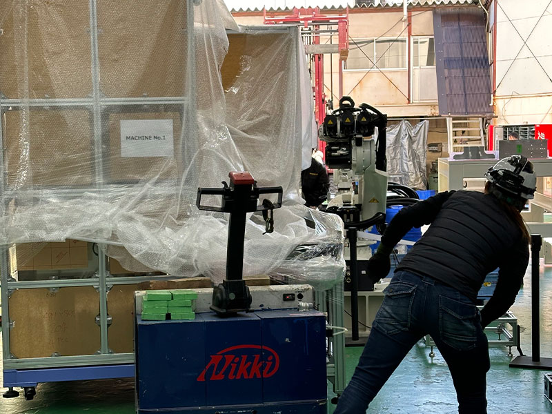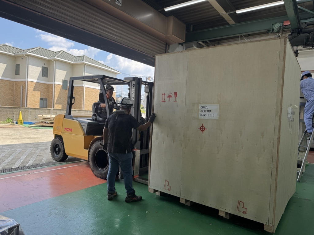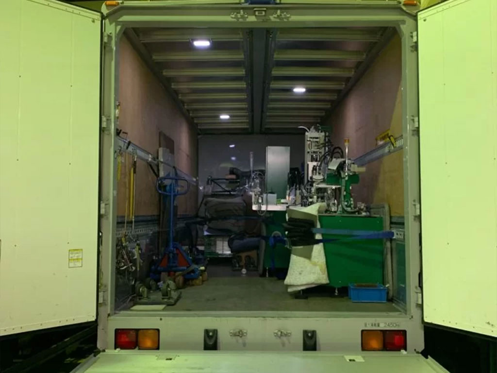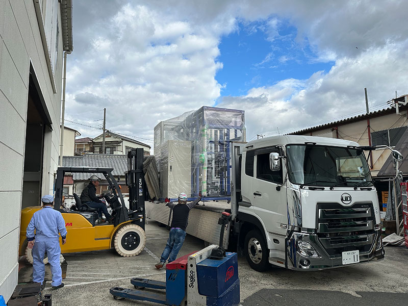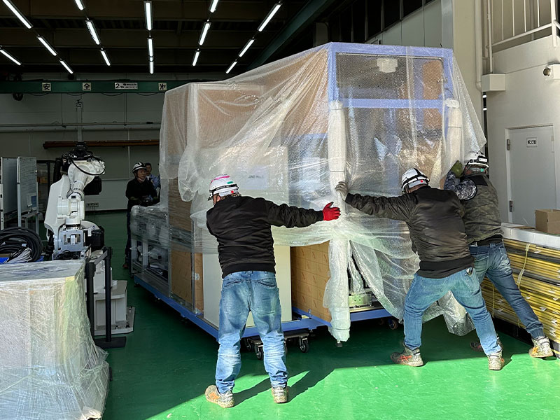 機械への損傷及び振動負荷防止として緩衝材を用いて運搬します。