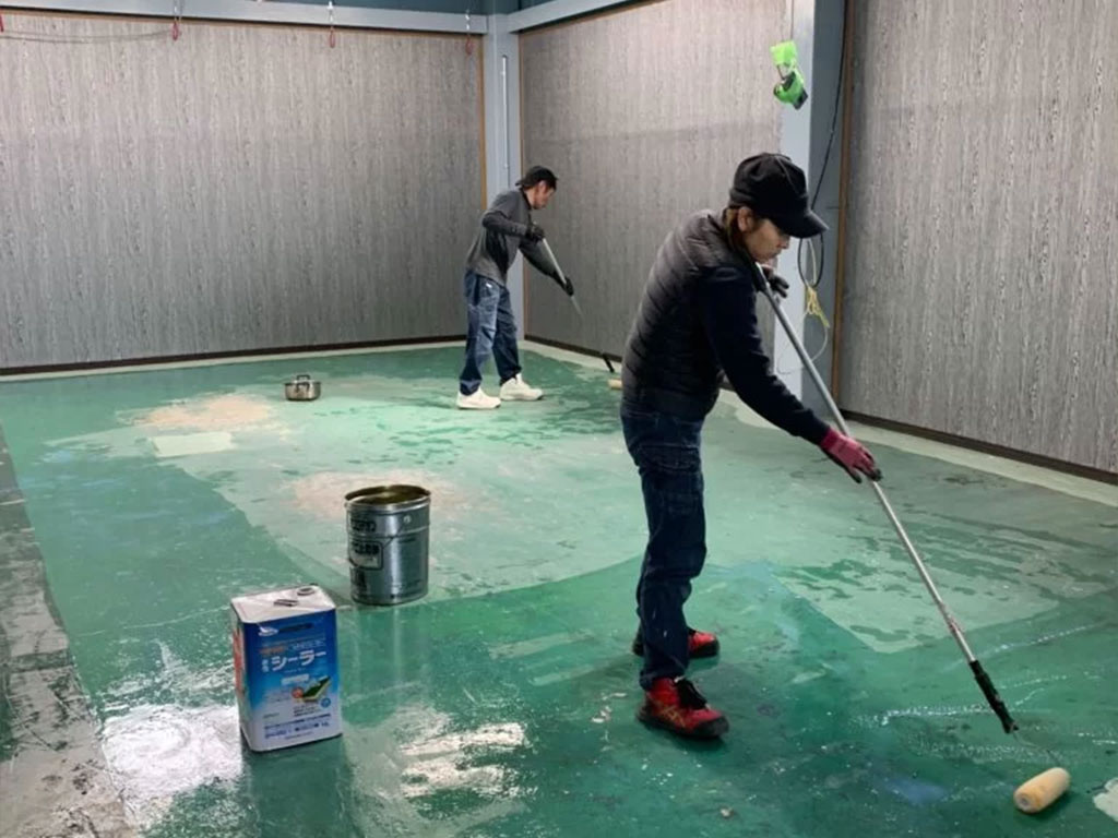 クロス完了後、全面床塗装となります。