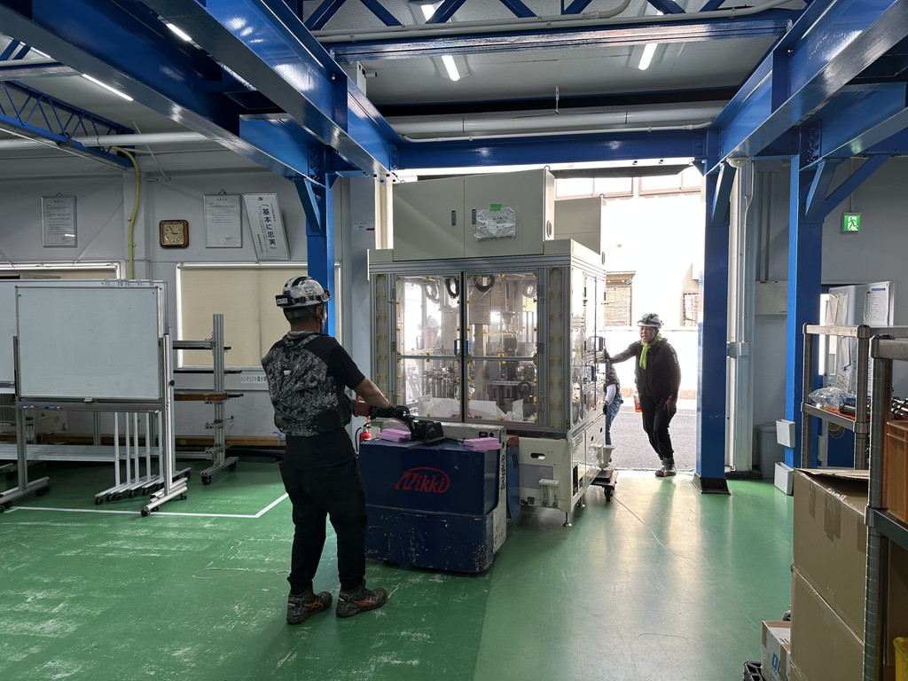 生活用品メーカーの紀陽除虫菊株式会社様のご依頼でエアーシール設備機の新旧入れ替えに伴う搬出入と据付、そして床塗装作業を行いました。いつも、ありがとうございます。